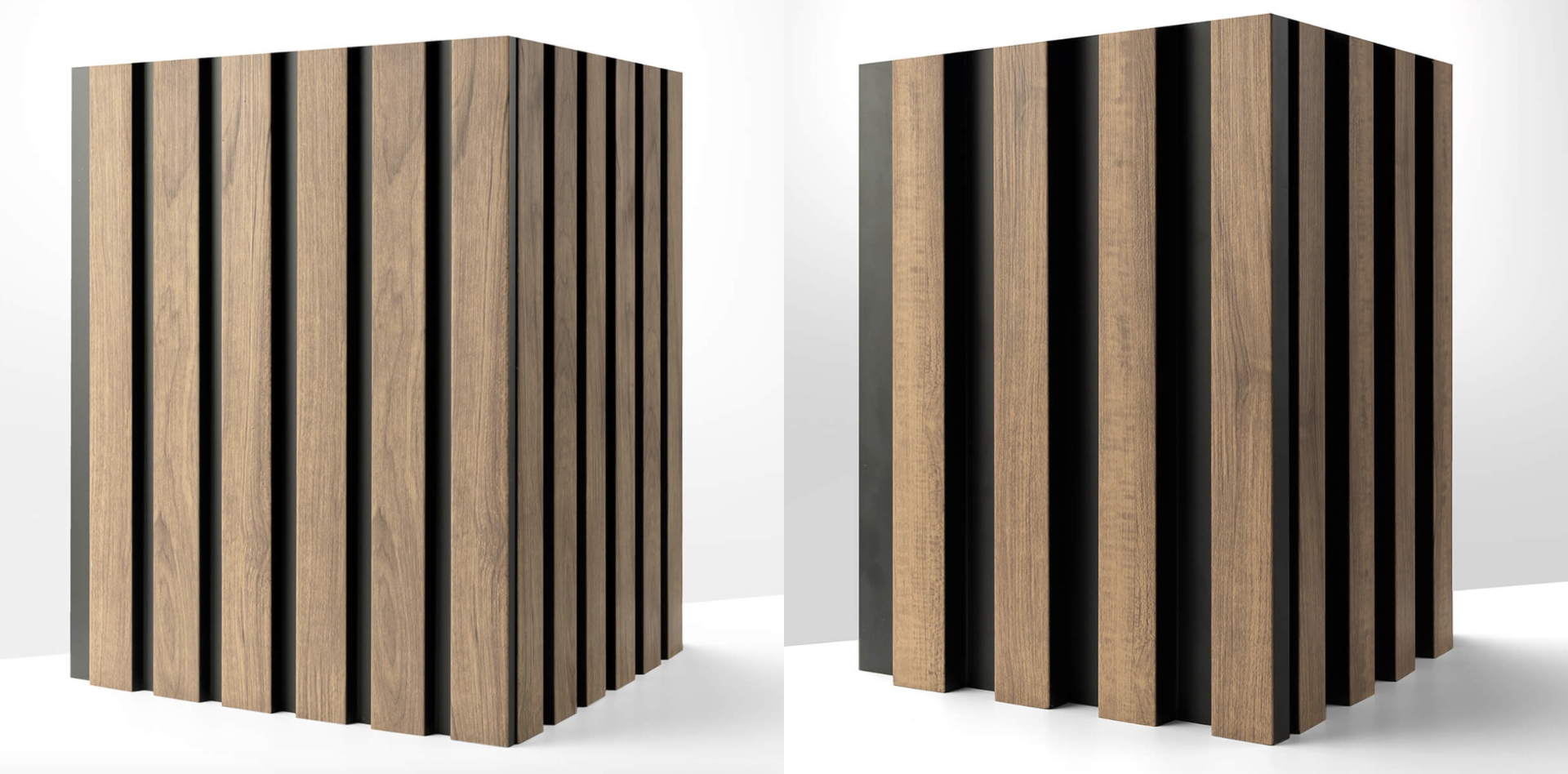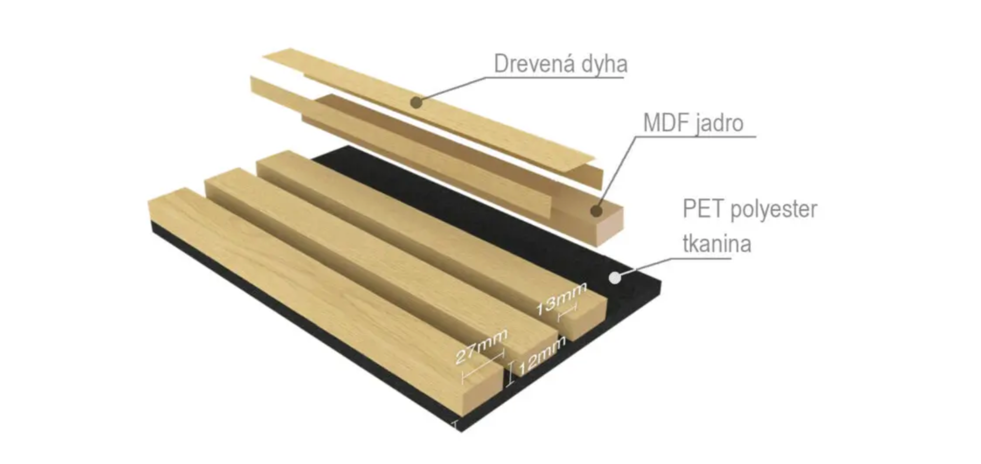 Okrem vizuálneho efektu majú panely aj výborné akustické vlastnosti. Lamely sú upevnené na polyesterovom podklade, ktorý účinne pohlcuje zvuk, znižuje ozvenu a pomáha eliminovať rušivý hluk v miestnosti.