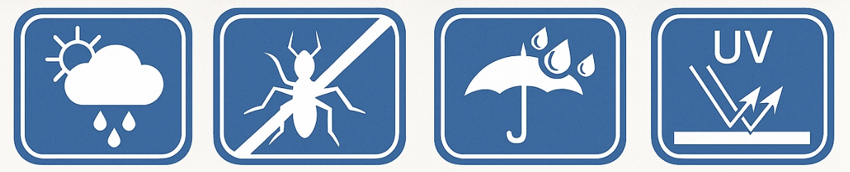 ✔ 100 % vodoodolné – materiál neabsorbuje vlhkosť, ideálny do vlhkého prostredia.